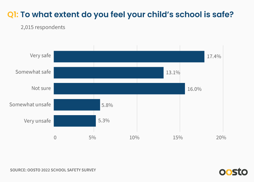 The good news is more than 30% feel their school is either very safe or somewhat safe. More troubling is that 11% of respondents stated that their child’s school is either somewhat or very unsafe. That’s an alarmingly high result.